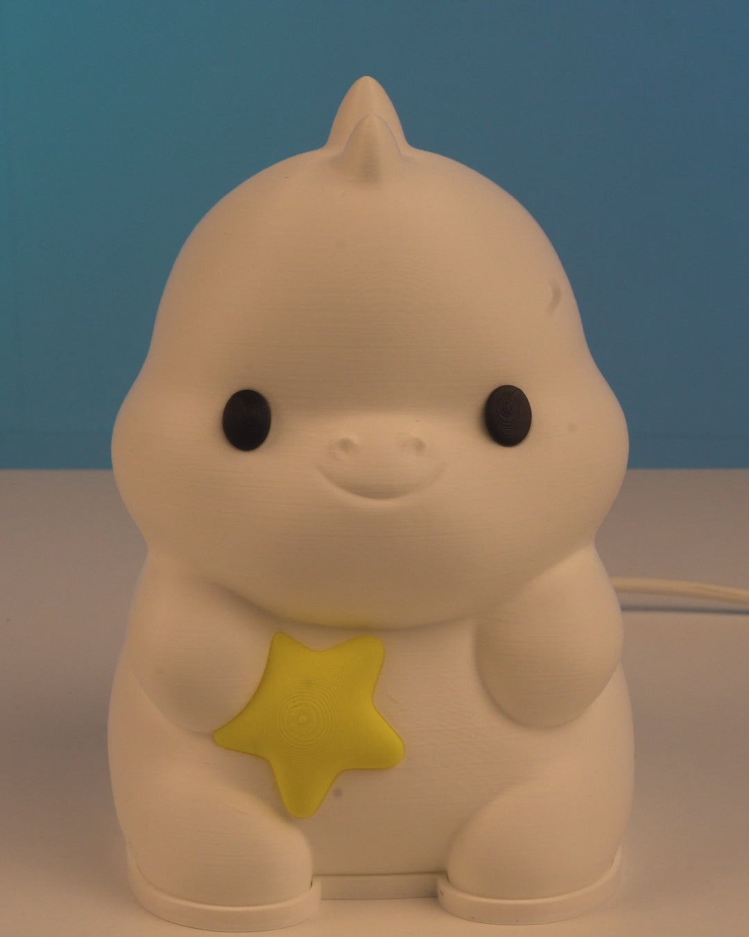 Avec ses formes arrondies et son design attachant, ce petit dinosaure tenant une étoile devient à la fois une veilleuse et un objet décoratif. Parfaite pour une chambre, un coin détente ou une décoration originale, cette lampe apporte une atmosphère douce et réconfortante.